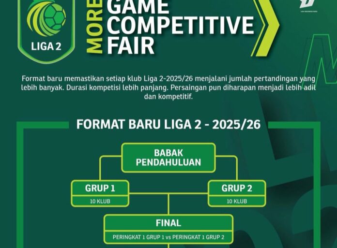 Jakarta – Liga 2 Indonesia musim 2025/26 dipastikan akan menggunakan format baru yang lebih panjang dan kompetitif. Setiap klub akan memainkan lebih banyak pertandingan dengan sistem triple round robin, sehingga persaingan dipastikan semakin ketat.